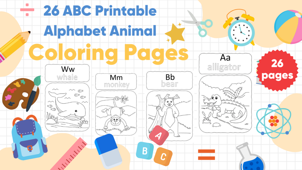 26 ABC Printable Alphabet Animal Coloring Pages : Kindergarten Activity, Preschool Activity, Homeschool Coloring, A to Z Animal Coloring